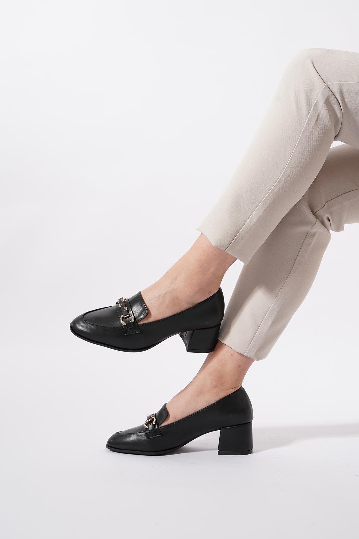 Nora Ön Tokalı Kadın Topuklu Ayakkabı Siyah Cilt